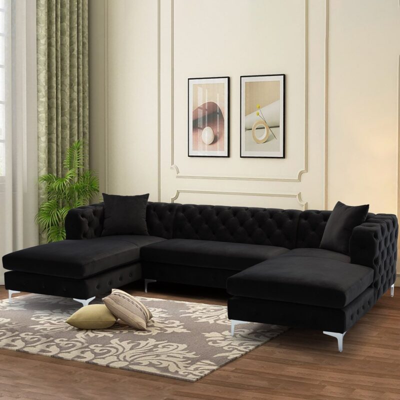 Velvet Upholstered U-Shaped Sectional Sofa